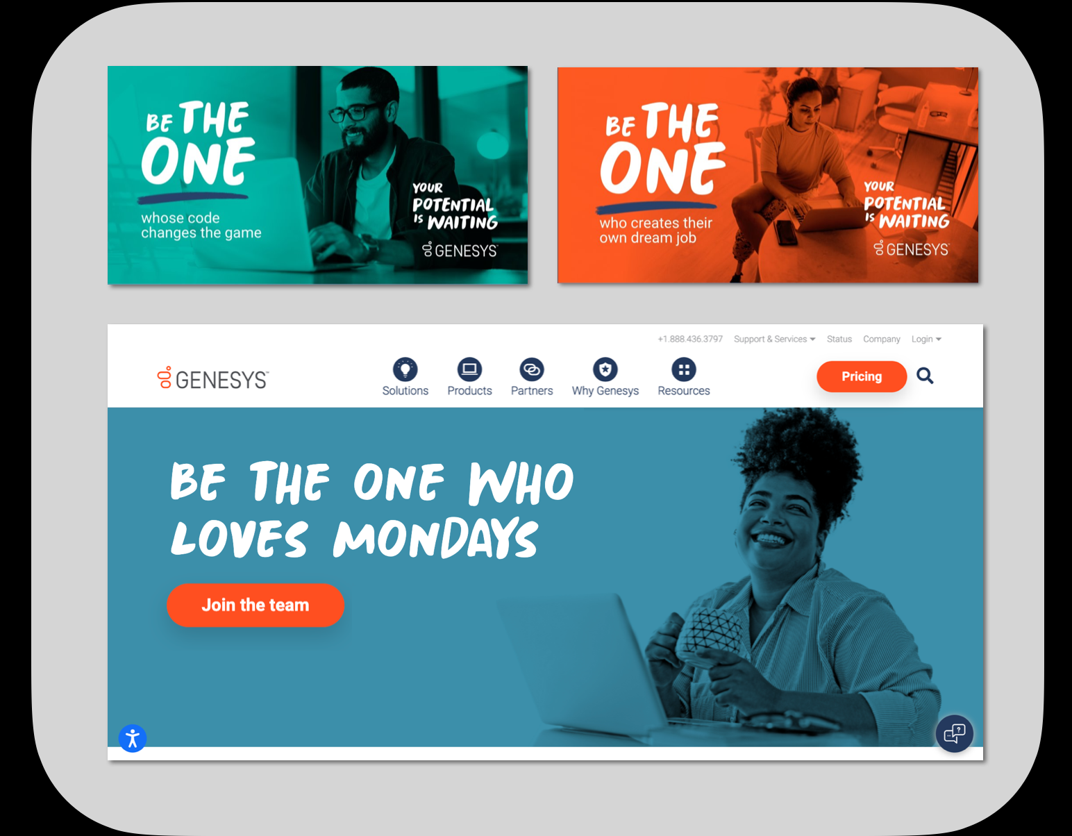 The talent team writes hundreds of job descriptions, so they needed a device that would provide brand consistency while giving them the opportunity to customize the message in a way that engages candidates. The “Be the One” headline structure lets them tailor each ad to to the role, and gives them a chance to have some fun flexing their own copywriting skills.