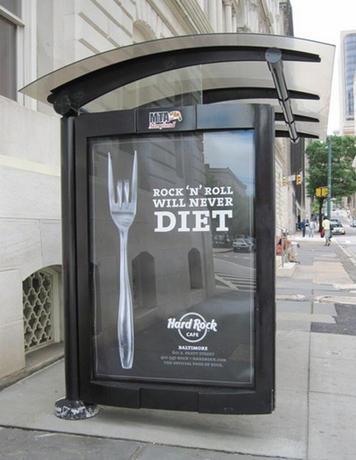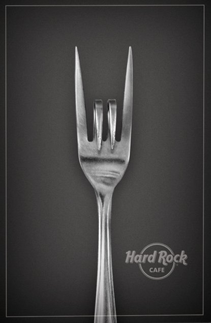 This started as a single ad and evolved into a global icon for the Hard Rock brand, wordlessly summing up the idea of a rock ’n’ roll restaurant. It’s been spotted everywhere from England to Italy, Poland, China and beyond. In the U.S., Hard Rock embraced it so fully, they put it up on a permanent revolving sign in Times Square, above their flagship NYC cafe in the historic Paramount Theater.