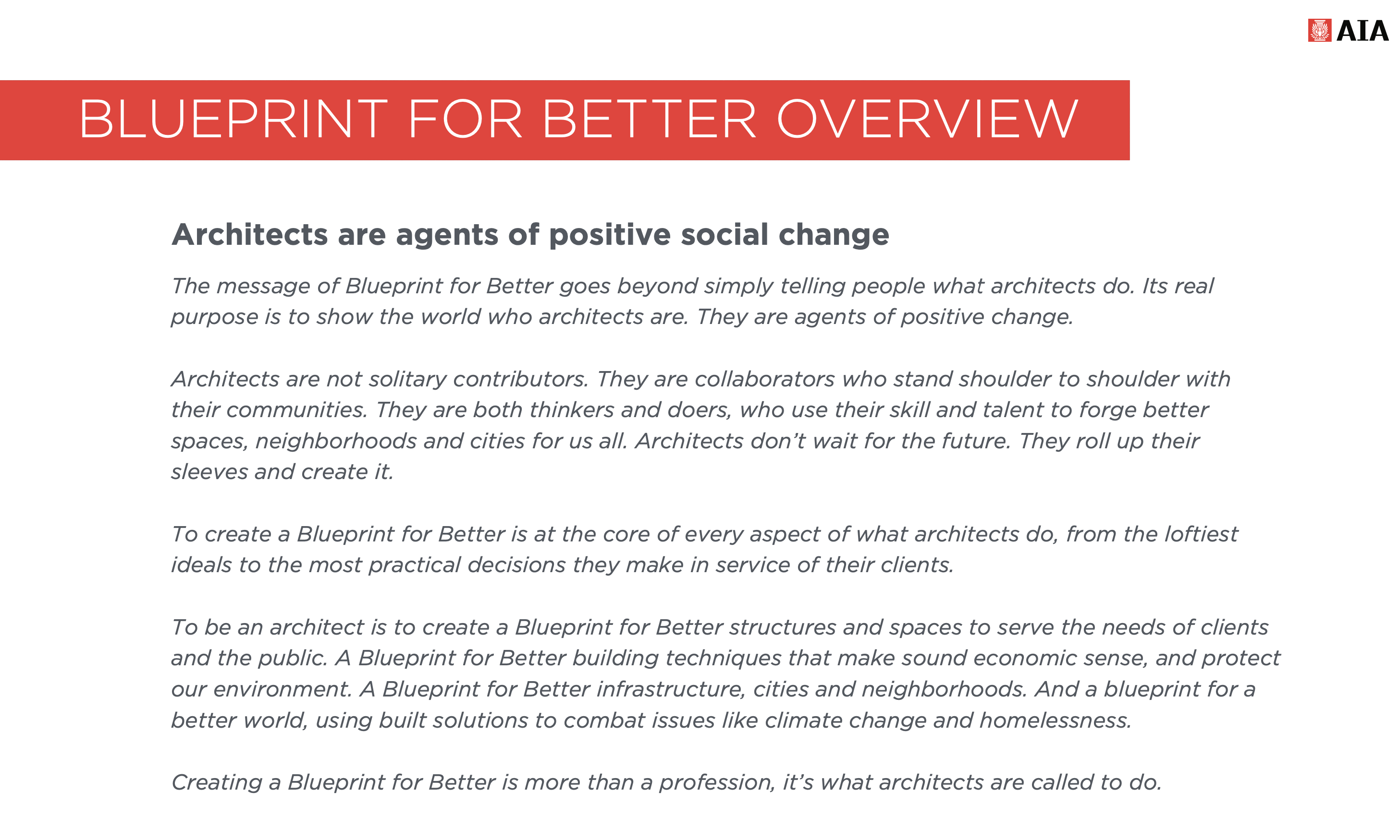 This brand positioning and awareness campaign was created for the American Institute of Architects. Still in use after 5 years, it has also become the AIA’s rallying cry in their fight against climate change.